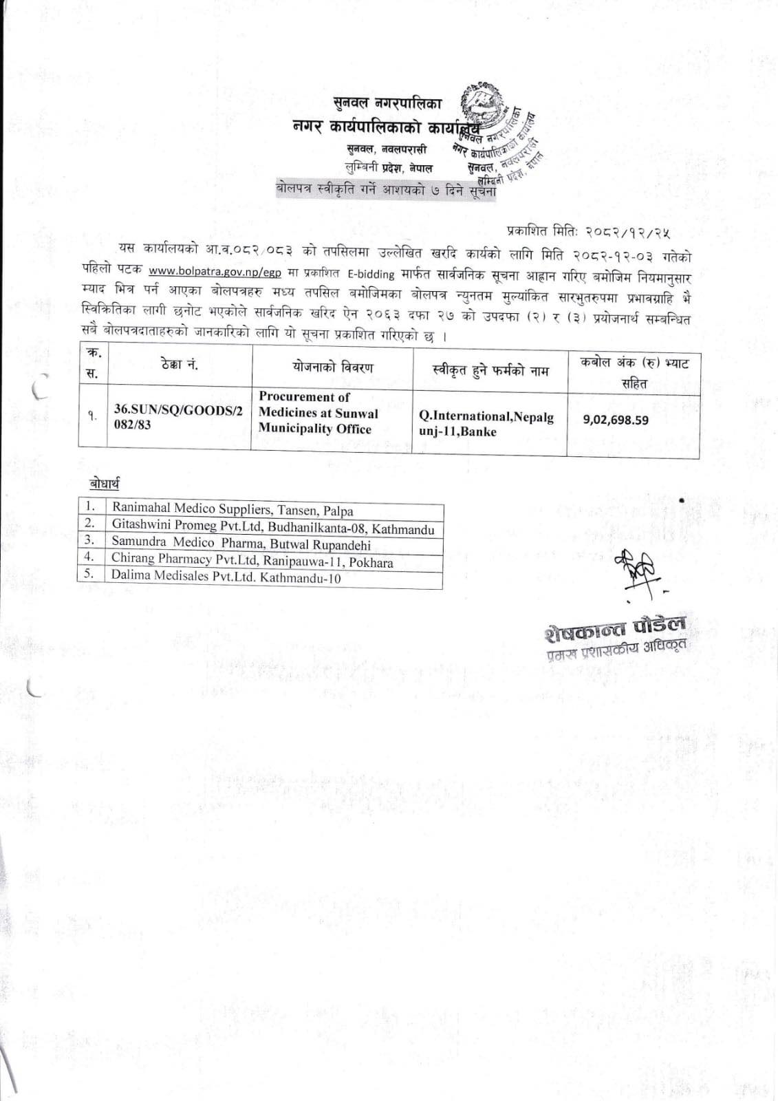 सात दिने आशय पत्र प्रकाशित गरिएको