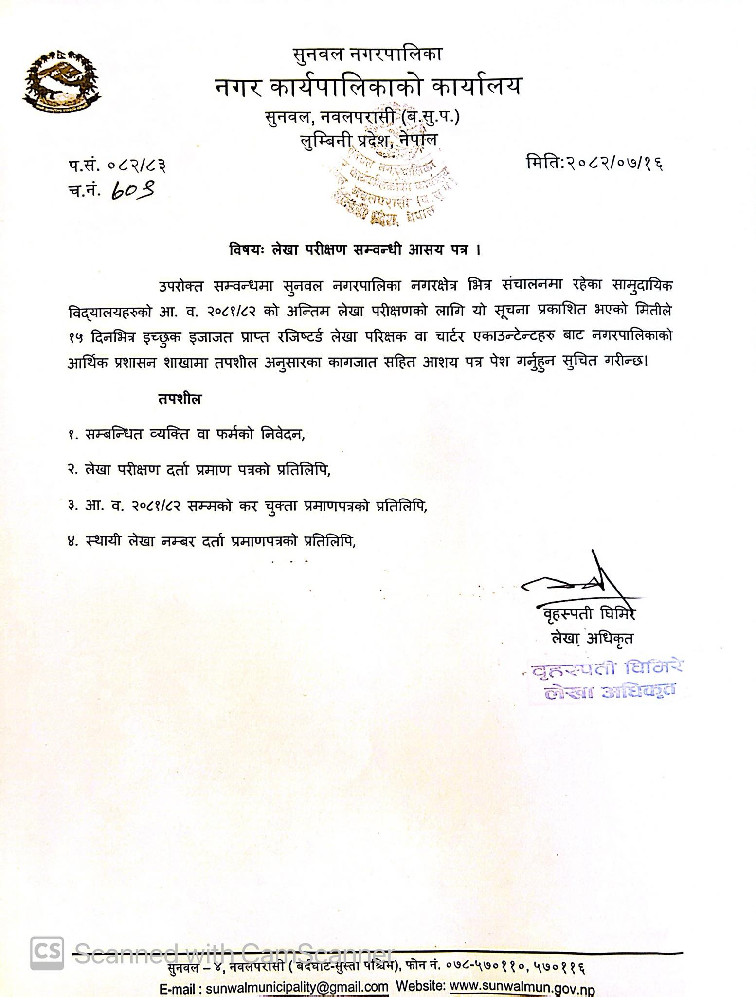 लेखा परीक्षण सम्बन्धी आशय पेश गर्ने सम्बन्धमा